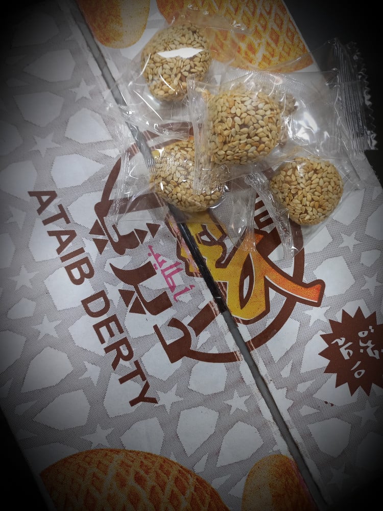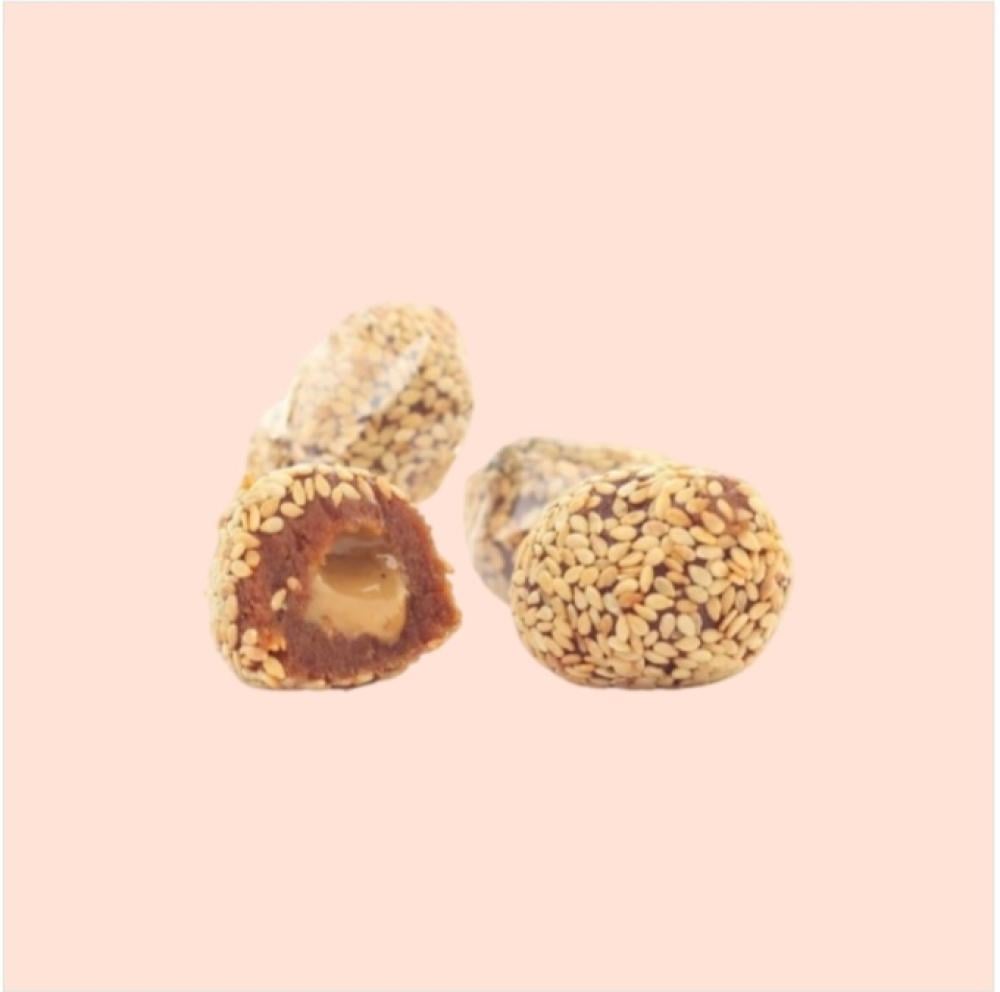 كرات التمر بالسمسم المحمص بحشوة الطحينه